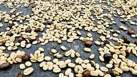 Das Bild ist eine detaillierte Nahaufnahme von Kaffeebohnen, die einen entscheidenden Schritt nach der Ernte durchlaufen.