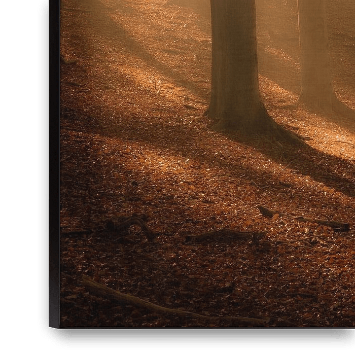 Bestelle dieses Landschafts-Wandbild Sonnenharfen leuchten an einem schönen Morgen durch die Bäume von Bas Meelker als Reproduktion auf Leinwand, Alu-Dibond, als Poster, Fototapete oder Acrylglasbild.