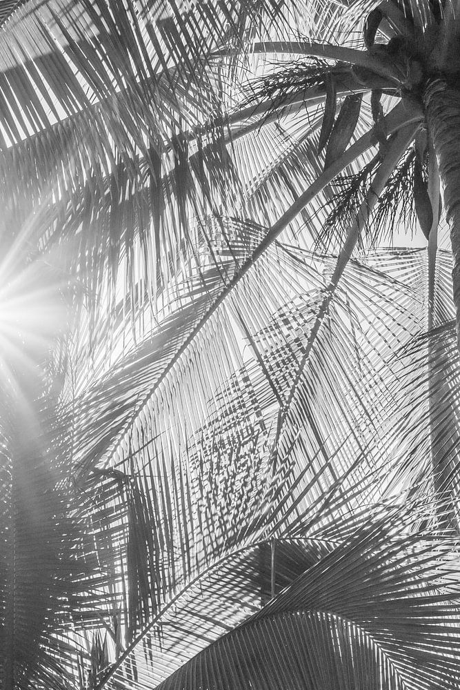 Entfliehen Sie in ein tropisches Paradies mit diesem Schwarz-Weiß-Foto mit dem Titel "Sunbeams through Tropical Foliage". Dieses Bild fängt das Spiel von Licht und Schatten ein, das entsteht, wenn die Nachmittagssonne durch die dichten Blätter einer majestätischen Palme scheint. Die subtilen Abstufungen von Licht und Textur verleihen dem Bild eine heitere Atmosphäre und Tiefe und machen es zu einer idealen Wanddekoration für Räume, die ein natürliches und beruhigendes Aussehen vermitteln sollen. Das Bild ist perfekt für Liebhaber natürlicher Schönheit und Fotokunst und wertet jedes Interieur mit einem Hauch ruhiger Eleganz auf.