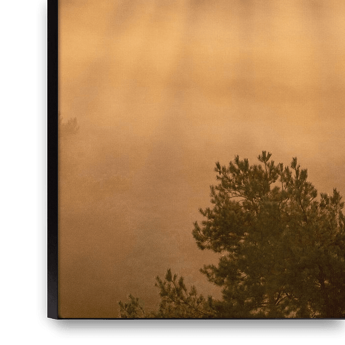 Bestelle dieses Landschafts-Wandbild Sonnenstrahlen über den Bäumen #1 von Thijs Pausma als Reproduktion auf Leinwand, Alu-Dibond, als Poster, Fototapete oder Acrylglasbild.