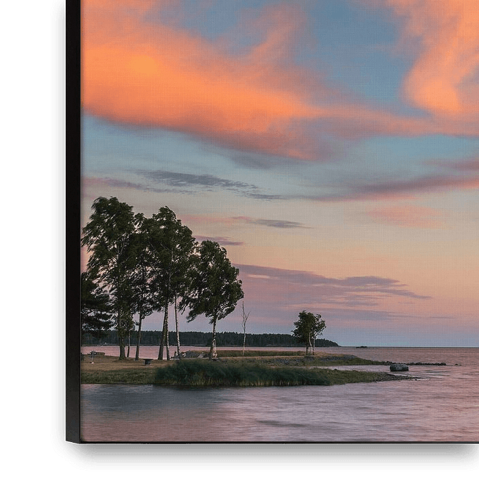 Ihre gewählte Kunst auf Leinwand, gespannt in einem Aluminiumrahmen. Schnell und einfach austauschbar für eine frische Ausstrahlung und ganz nach Ihren Wünschen.