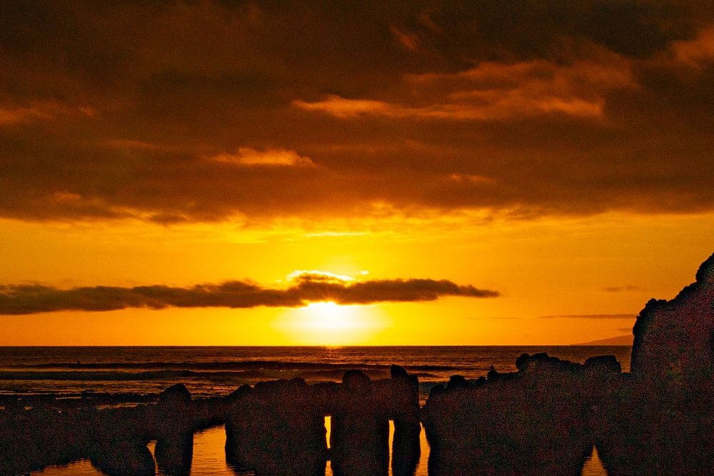 Die Zeit zwischen dem Zeitpunkt, an dem die Sonne bereits untergegangen und es noch nicht völlig dunkel ist, nennt man Dämmerung: Die Dämmerung ist also eine Übergangsphase und der Sonnenuntergang ein Moment. Von dem Moment, in dem der erste Rand der Sonne hinter dem Horizont verschwindet, bis zum Untergang dauert es aufgrund des Sonnendurchmessers (0,53°) 3 bis 4 Minuten. Diese Dauer hängt von der Jahreszeit und der geografischen Breite des Beobachtungsortes ab; vom Äquator aus dauert es etwas mehr als 2 Minuten. Der Zeitpunkt des Sonnenuntergangs wird oft als das Ende des Tages angesehen.
