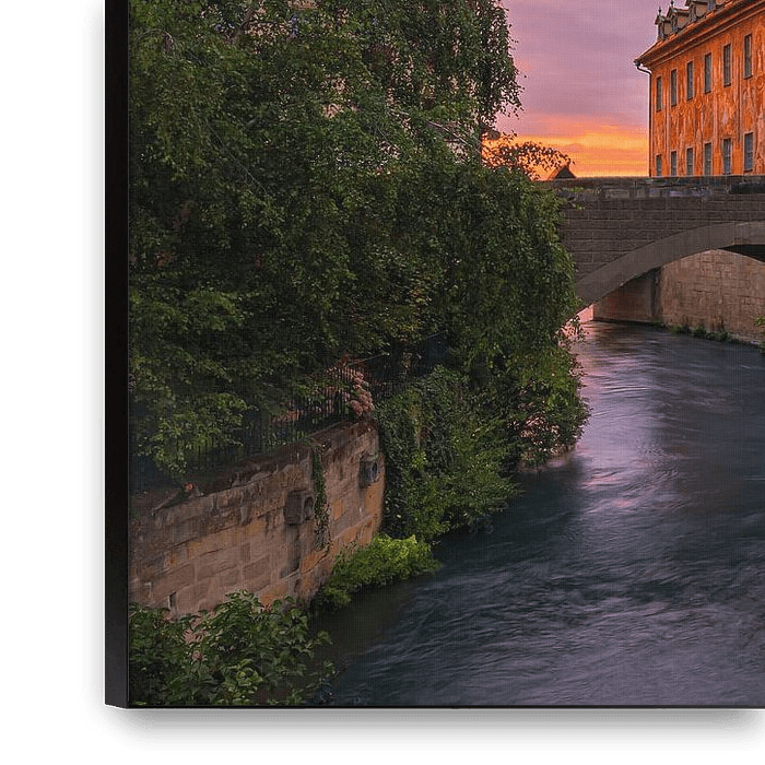 Bestelle das Foto Sonnenuntergang am alten Rathaus in Bamberg, Bayern, Deutschland von Henk Meijer Photography als Reproduktion auf Leinwand, Alu-Dibond, als Poster, Fototapete oder Acrylglasbild.