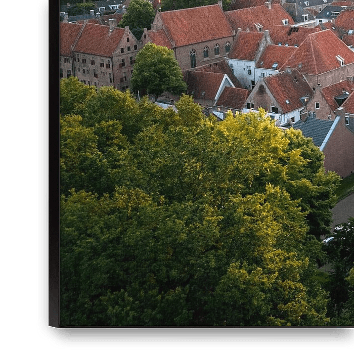 Bestelle das Foto Sonnenuntergang an der Grote Kerk in Elburg von Bas van der Gronde als Reproduktion auf Leinwand, Alu-Dibond, als Poster, Fototapete oder Acrylglasbild.