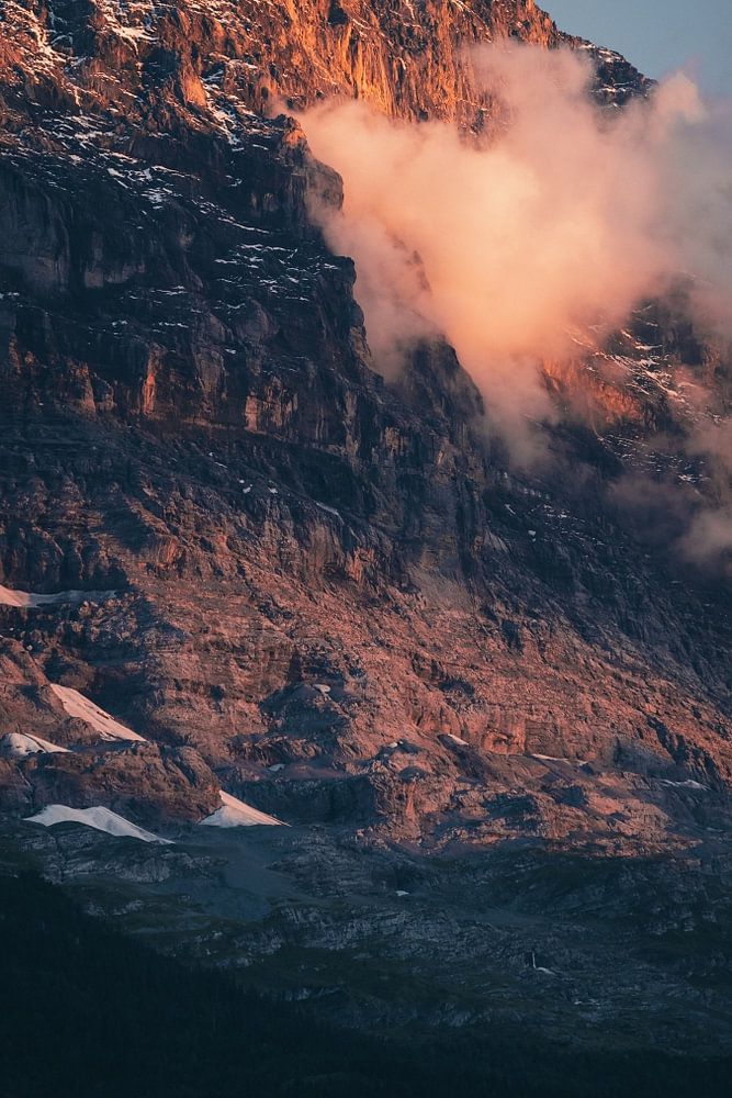 Sonnenuntergang an der berühmt-berüchtigten Eigernordwand.