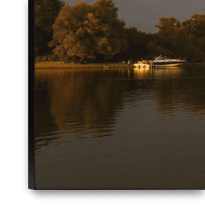 Ihre gewählte Kunst auf Leinwand, gespannt in einem Aluminiumrahmen. Schnell und einfach austauschbar für eine frische Ausstrahlung und ganz nach Ihren Wünschen.