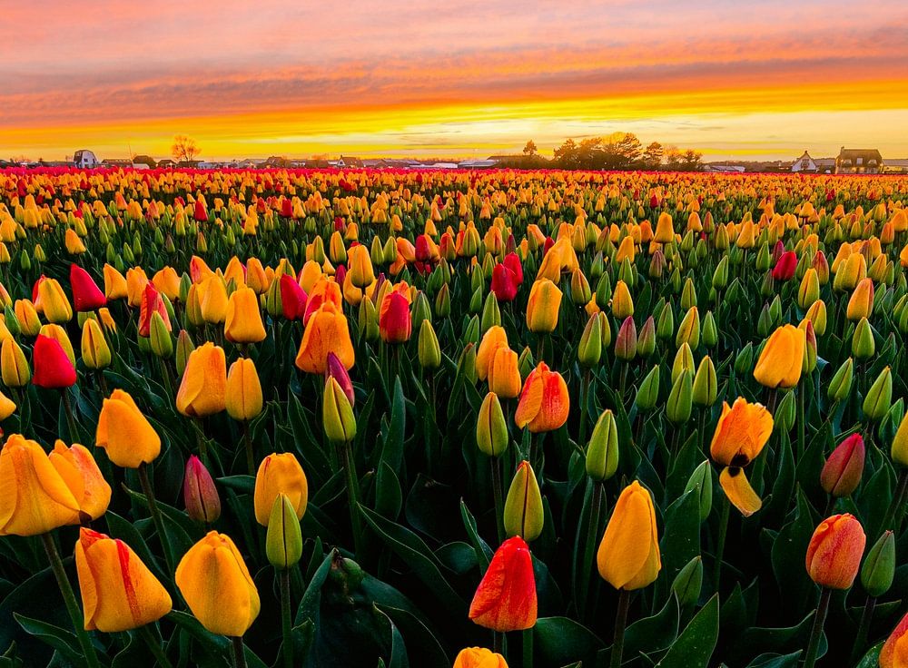 Die schönsten Tulpenfelder sieht man am besten bei Sonnenaufgang und Sonnenuntergang! Wunderbar, ihn im Frühling im Haus zu haben!
