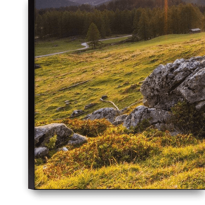 Ihre gewählte Kunst auf Leinwand, gespannt in einem Aluminiumrahmen. Schnell und einfach austauschbar für eine frische Ausstrahlung und ganz nach Ihren Wünschen.