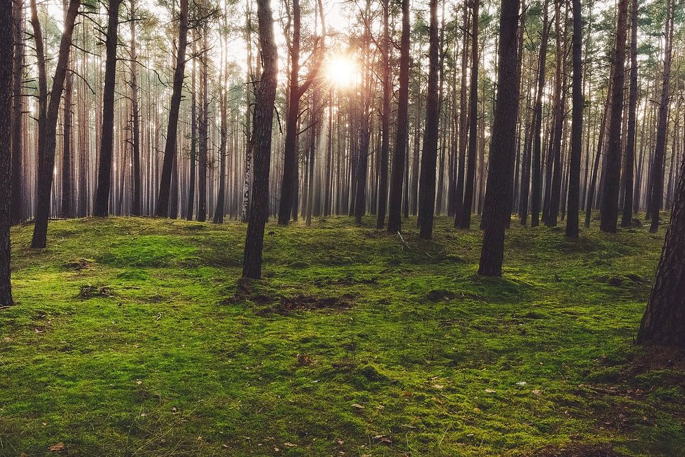 Ein Waldspaziergang im Frühjahr - die Sonne schimmert noch schwach durch die Bäume.