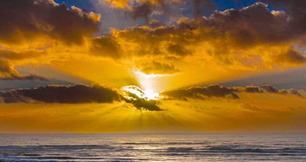 Das Besondere an diesem Foto sind die Jakobsleitern, die auf beiden Seiten der Sonne zu sehen sind.