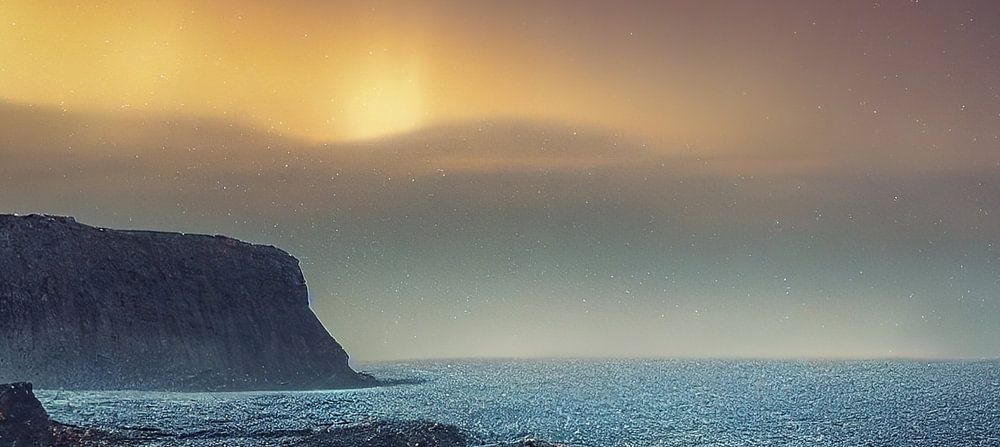 Sonnenuntergang über dem Ozean mit Klippen Art Illustration