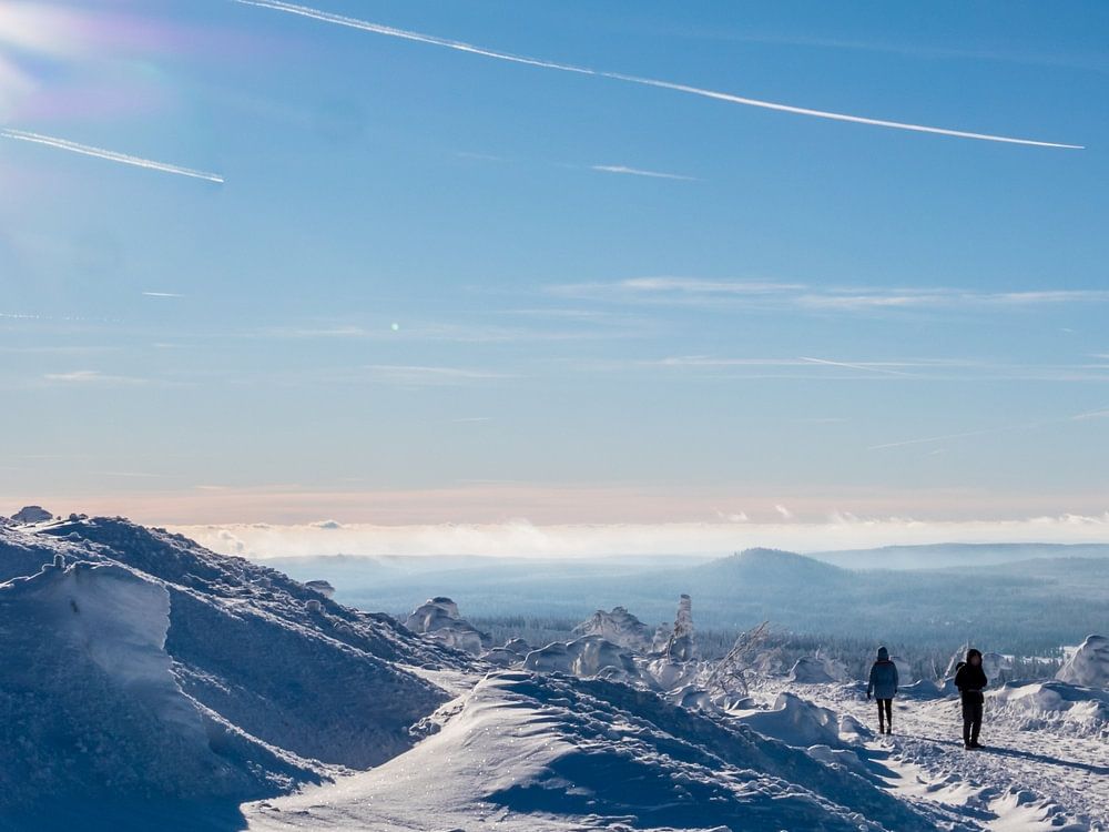 Sonniger Wintertag auf dem Fichtelberg in Sachsen