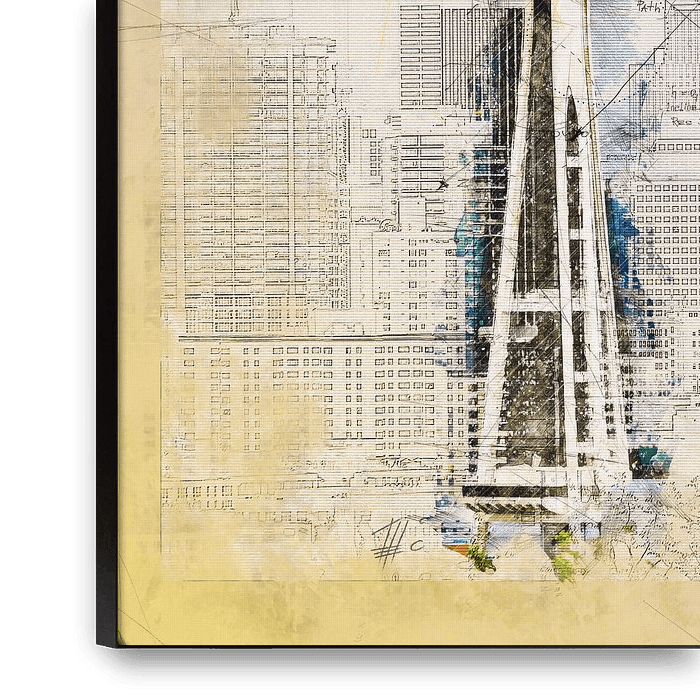 Ihre gewählte Kunst auf Leinwand, gespannt in einem Aluminiumrahmen. Schnell und einfach austauschbar für eine frische Ausstrahlung und ganz nach Ihren Wünschen.