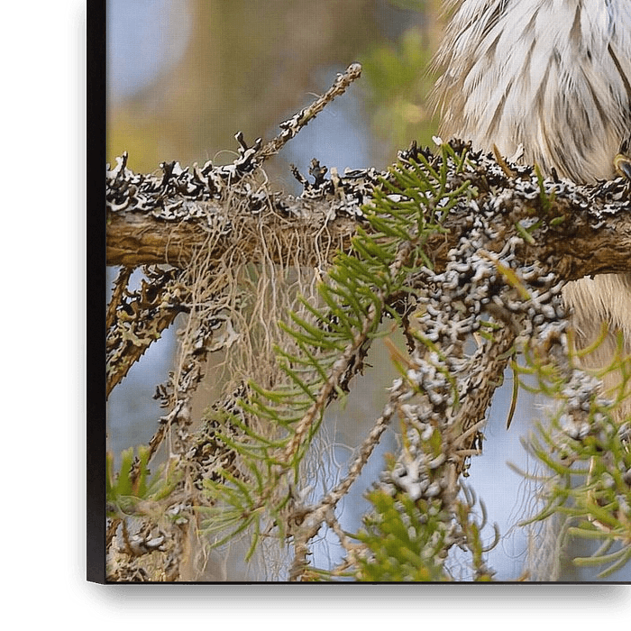 Bestelle dieses Landschafts-Wandbild Sperlingskauz im finnischen Urwald von Jacob Molenaar als Reproduktion auf Leinwand, Alu-Dibond, als Poster, Fototapete oder Acrylglasbild.