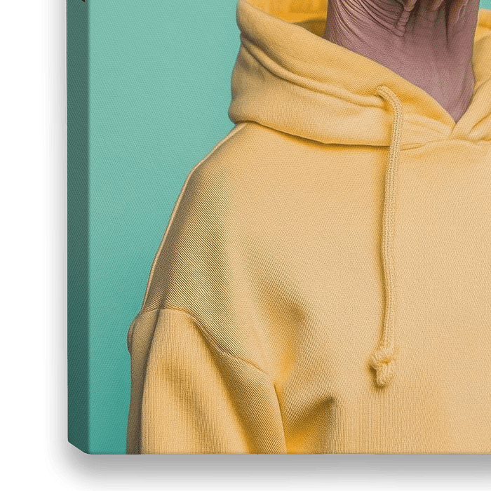 Mit seinen auffälligen, großen Ohren und der samtigen Haut strahlt dieser Sphynx eine charmante Exzentrik aus. Eingehüllt in ein leuchtend gelbes Hoodie und einer passenden Mütze, wirkt er fast wie ein stilbewusster Stadtbewohner. Voller Persönlichkeit und Lebensfreude steht er vor einem sanften pastelgrünen Hintergrund und zieht alle…