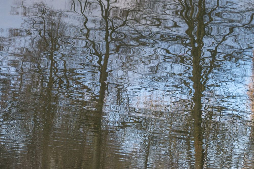 Ich drehte das Bild, Reflexion im Wasser, um 180°. Das Foto wurde am 19. Dezember 2016 im Stadtpark in Aalst aufgenommen.