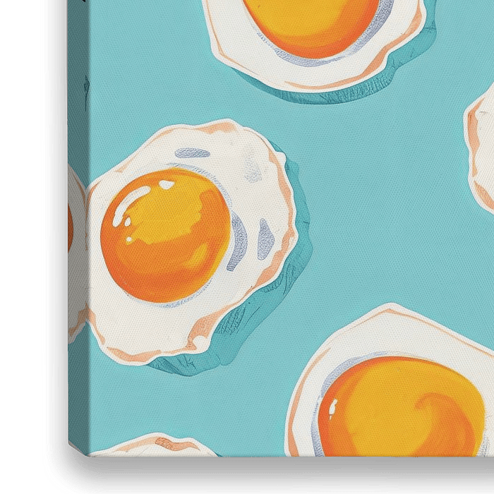 Dieses lebhafte Muster aus Spiegeleiern auf einem hellblauen Hintergrund bringt Spaß und Farbe in jede Küche. Ideal für Kochbegeisterte oder als humorvolles Element in einem modernen Zuhause. Perfekt für Küchenposter oder als fröhliche Wanddekoration.