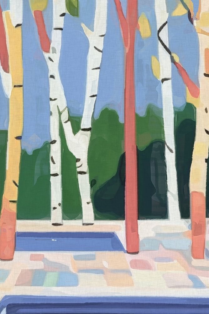 Bestelle diese Illustration Spiegelungen von Birken im Pool 2 von Anna Marie de Klerk als Reproduktion auf Leinwand, Alu-Dibond, als Poster, Fototapete oder Acrylglasbild.