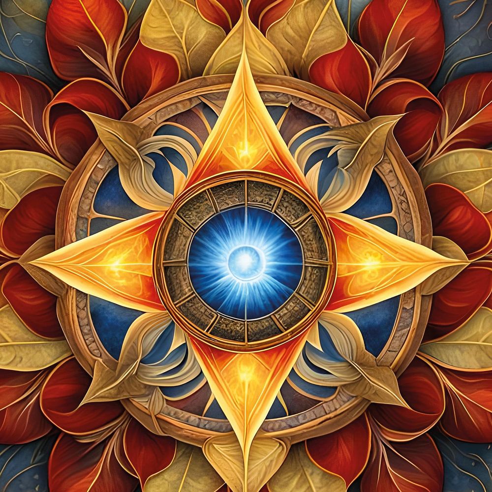 Spirituelle Mandala-Symbolik in Orange, Gelb und Rot