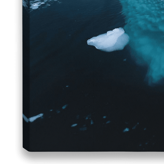 Dieses Bild zeigt, dass die Spitze des Eisbergs der kleinste Teil der Eisformation ist. Diese Eisscholle schwimmt im schwarzen, klaren Wasser der Diskobucht in Grönland.
