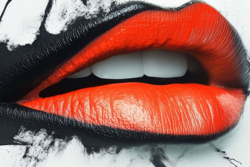 Dieses kraftvolle Kunstwerk zeigt einen lebendig gemalten Mund mit leuchtend roten Lippen, umrahmt von abstrakten schwarzen Spritzern, die sich von dem sauberen weißen Hintergrund abheben. Die kühne Farbkombination aus feurigen Rottönen und tiefschwarzen Details schafft ein ausdrucksstarkes Bild voller Kontrast und Intensität. Das Werk fängt einen Moment stiller Leidenschaft und Intrige ein, wobei die schwarz-weißen Spritzer ein Gefühl von Bewegung und roher Energie vermitteln. Dieses Kunstwerk eignet sich perfekt als Statement in einer modernen Einrichtung und verleiht jedem Raum ein dramatisches Flair und einen Hauch von Geheimnis.