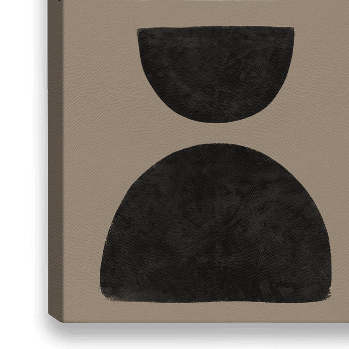 Moderne abstrakte Kunst mit Erdtönen. Halbkreise und ein Kreis in einem länglichen Kunstwerk.