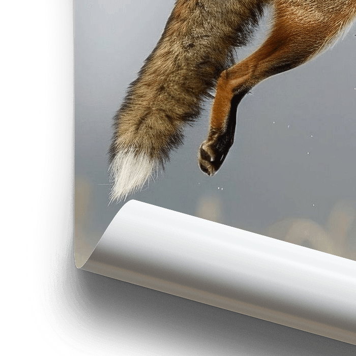 Dieses faszinierende Bild zeigt einen Fuchs inmitten eines Sprunges, eingefangen in einer beeindruckenden Momentaufnahme. Die lebendigen Farben des Fells und die dynamische Pose vermitteln die Energie und Anmut des Tieres. Perfekt für Liebhaber von Tierzeichnungen, Naturmotiven und dynamischer Fotografie, bringt dieses Werk die Wildheit und Schönheit der Natur in Ihr Zuhause. Ideal für Wohnzimmer oder Büros, es ist eine wunderbare Ergänzung für jede Sammlung von Naturfotografien und Tierbildern.