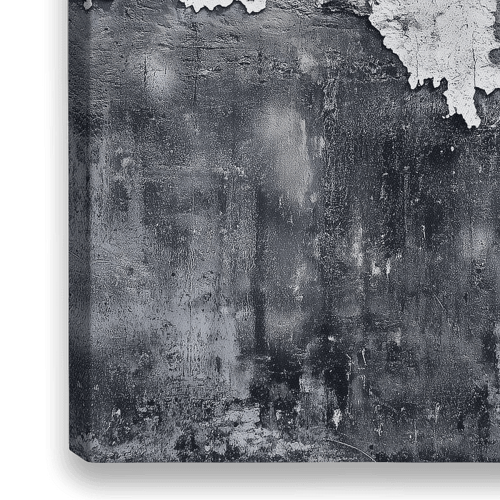 Verwitterte Wand mit einer faszinierenden Textur, die von Alterung und Verfall zeugt. Die Komposition besteht aus einem oberen Teil mit hellen, fast beigen Tönen, die unten allmählich zu dunkleren Grau- und Schwarztönen verblassen. Die Farbe scheint abgeblättert zu sein, was zu einer rauen, industriellen Ästhetik beiträgt. Die subtilen…