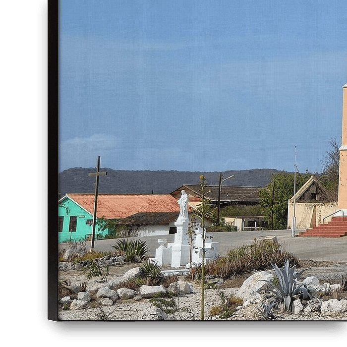 Diese neugotische Kirche, St. Willibrordus, steht auf der westlichen Hälfte von Curaçao und wurde am 27. April 2014 fotografiert. Ein paar Jahre später wurde die Kirche rosa gestrichen.