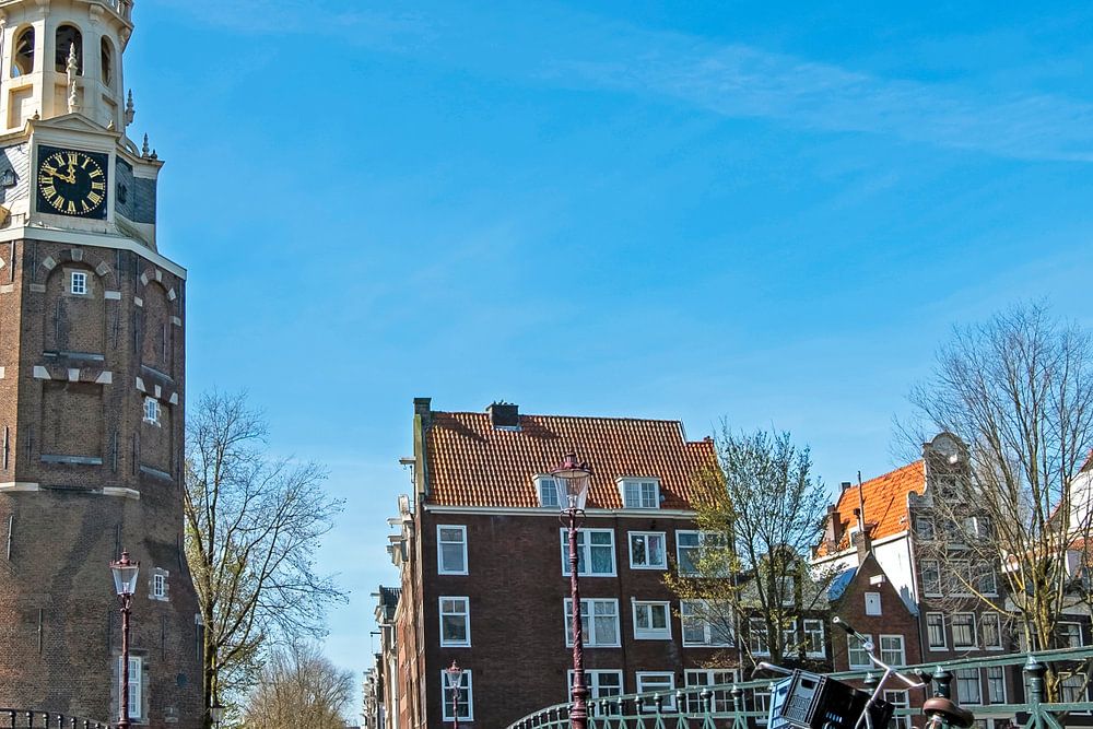 Stadtbild von Amsterdam in den Niederlanden mit dem Montelbaan-Turm in den Niederlanden