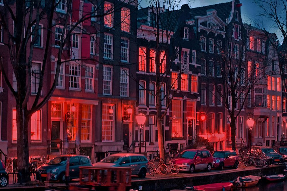 Stadtbild von Amsterdam mit Halbmond in den Niederlanden