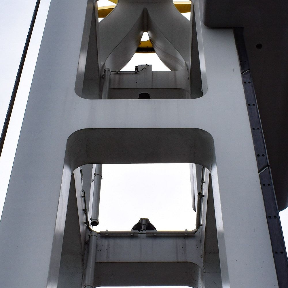 Die Stadtbrücke in Kampen eine Brücke mit goldenen Rädern. Die Räder sind mit Blattgold verziert, der Rest der Brücke ist weiß. Kampen, jahrhundertealte Hansestadt an der IJssel. Die Brücke aus einem anderen Blickwinkel ergibt einen schönen Effekt.