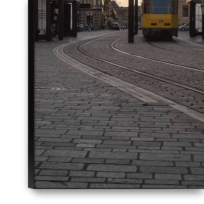 Bestelle das Foto Stadtgesicht mit einer Straßenbahn von Sebastian Stef als Reproduktion auf Leinwand, Alu-Dibond, als Poster, Fototapete oder Acrylglasbild.