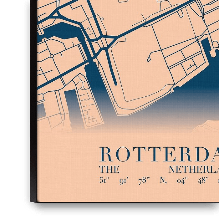 Auf diesem Entwurf sehen Sie einen Stadtplan des Zentrums von Rotterdam. Wir haben die Designs in verschiedenen Farben verfügbar, schauen Sie in unserem Shop nach!
