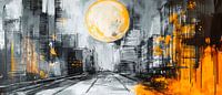Ein lebendiges Spiel aus Schwarz, Weiß und leuchtendem Orange entfaltet sich, während die leuchtende volle Mondscheibe über einer urbanen Szenerie thront. Die dynamischen Linien und kräftigen Farben verleihen diesem Kunstwerk eine aufregende Energie – perfekt für ein modernes Wohnzimmer, das mit urbanem Flair und zeitgenössischer…