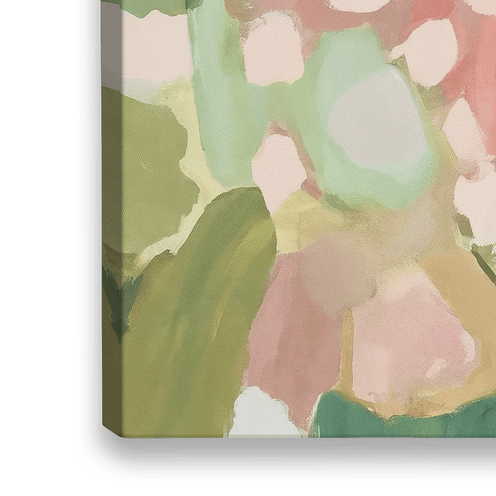 Urbaner Dschungel, abstrakt in Pastellfarben. Eine gehäutete Leinwand mit modernen Formen und Linien, die zusammen ein botanisches Ganzes bilden.
