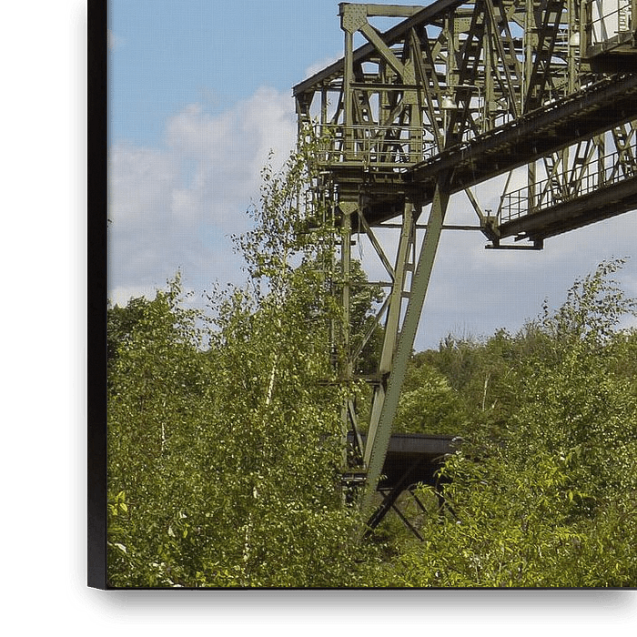 Hoch über den Bäumen erhebt sich diese mächtige Metallkonstruktion. Mit seiner grünen Farbe scheint es sich in die Umgebung einfügen zu wollen, aber der kantige Koloss kann seinen industriellen Charakter nicht verbergen. Wie ein Dinosaurier erhebt er sich über das Laub und hält Ausschau nach Gleichgesinnten. Sind sie noch da?