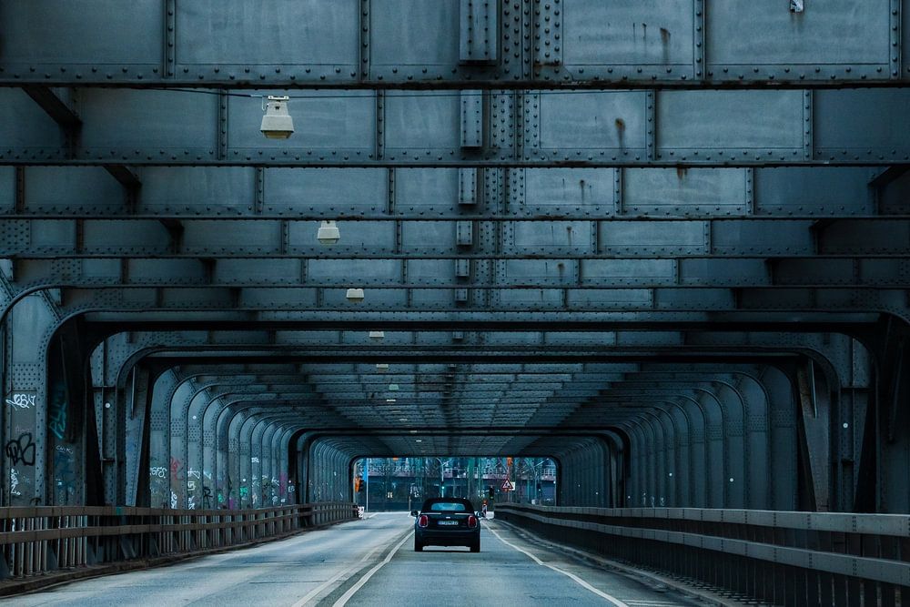 Stahlbrücke in Hamburg über der Elbe im Industrielook, tolles Wandbild.