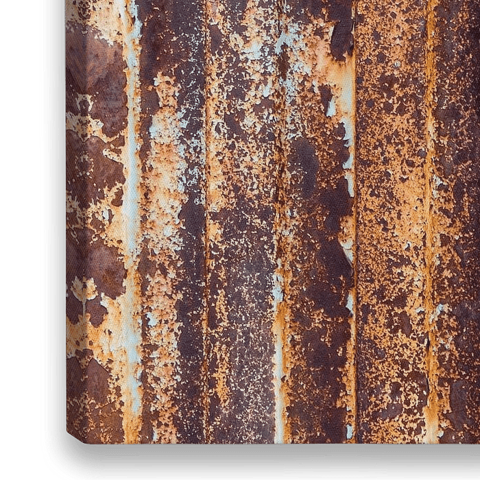 Bestelle dieses abstrakte Wandbild Stahlwand Patina Voll mit Rost von Andreea Eva Herczegh als Reproduktion auf Leinwand, Alu-Dibond, als Poster, Fototapete oder Acrylglasbild.
