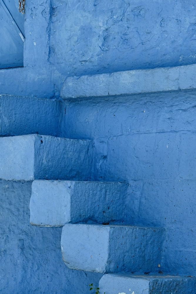 Diese wunderschöne alte Treppe ist landestypisch griechisch, sowohl architektonisch als auch mit ihrem blau-weißen Farbenspiel. Der Bildausschnitt wurde so gewählt, dass viele grafische Elemente, also Horizontalen, Vertikalen, Diagonalen, Rechtecke usw., Spannung im Bild erzeugen. Auch war es das Ziel, Akzente durch Licht und Schatten auf den verschiedenen Flächen zu setzen.