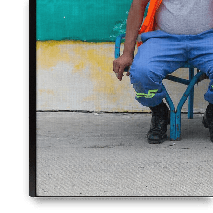 Bestelle das Foto Stationsmitarbeiter in der Mongolei ruhen sich auf einer Bank aus von Andre Brasse Photography als Reproduktion auf Leinwand, Alu-Dibond, als Poster, Fototapete oder Acrylglasbild.