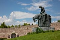 Bestelle das Foto Statue eines Ritters vor der Basilika des Heiligen Franziskus in Assisi, Italien von Joost Adriaanse als Reproduktion auf Leinwand, Alu-Dibond, als Poster, Fototapete oder Acrylglasbild.