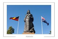 Adelaide South Australia Statue von Königin Victoria auf dem Victoria Square / Tarntanyangga mit zwei australischen Flaggen dahinter.