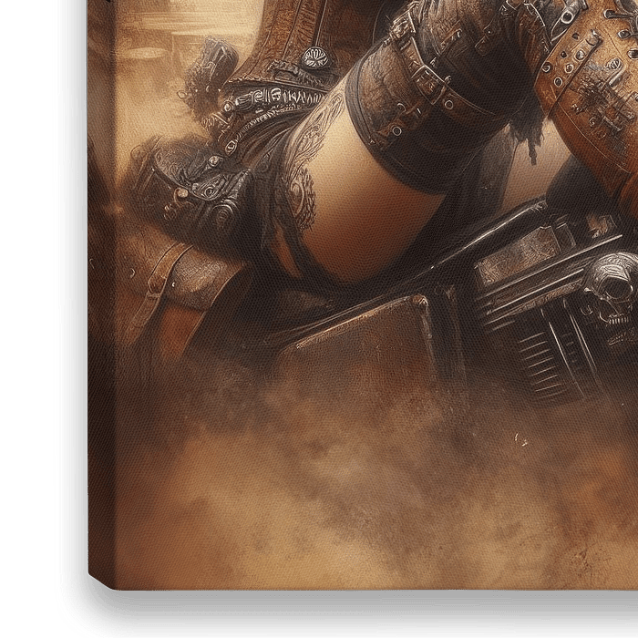 Sexy Steampunk auf coolem Bike
