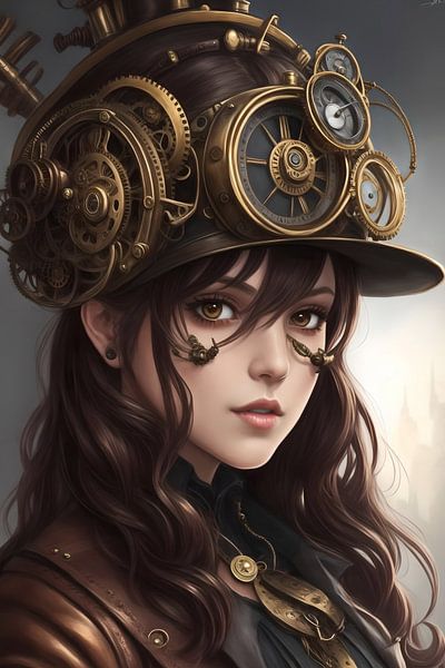Bestelle das digitale Kunst Bild Steampunk Woman von DeVerviersBelgium als Reproduktion auf Leinwand, Alu-Dibond, als Poster, Fototapete oder Acrylglasbild.