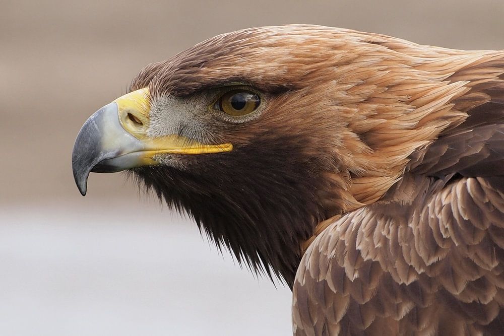 Deze steenarend zat defensief over zijn prooi gebogen. Even keek hij op om te zien of het gevaar dichterbij kwam of niet. De steenarend is een van de grootste landarenden op het noordelijk halfrond