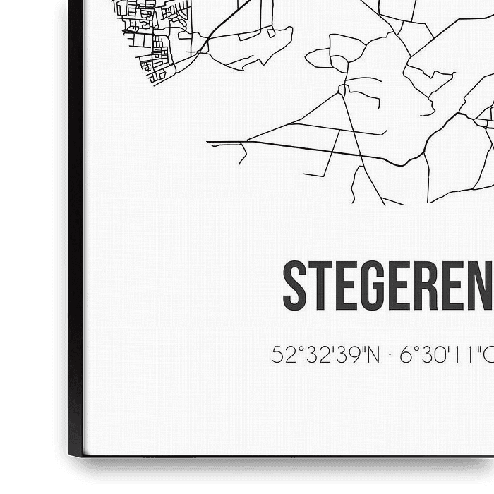 Bestelle dieses abstrakte Wandbild Stegeren (Overijssel) | Karte | Schwarz und weiß von Ortsdrucke als Reproduktion auf Leinwand, Alu-Dibond, als Poster, Fototapete oder Acrylglasbild.