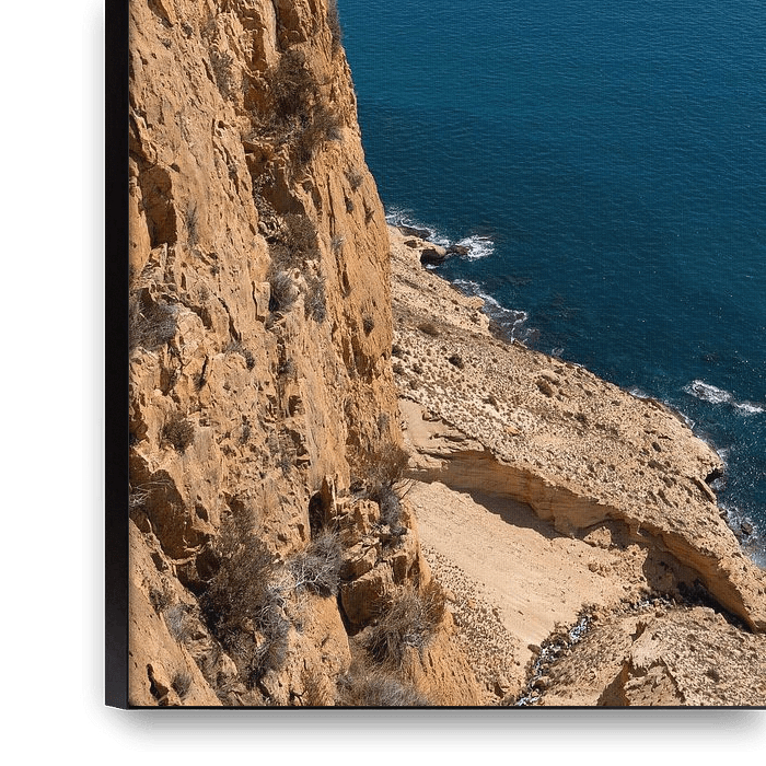 Bestelle das Foto Steile Klippe und Blick auf das blaue Meer von Adriana Mueller als Reproduktion auf Leinwand, Alu-Dibond, als Poster, Fototapete oder Acrylglasbild.