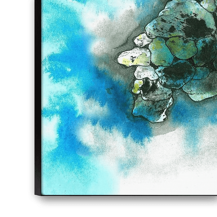 Im blauen Wasser ruhen kalte Steine, die mit ihren Formen, Farben und ihrem geheimnisvollen Erscheinen in diesem Wasser überraschen.