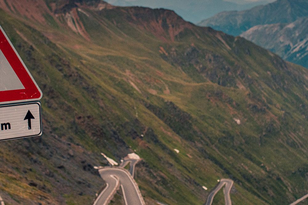 Verkehrszeichen-Kehren auf dem, nach Meinung vieler, schönsten aller Bergpässe, dem Stelviopass in den schweizerisch-italienischen Alpen.